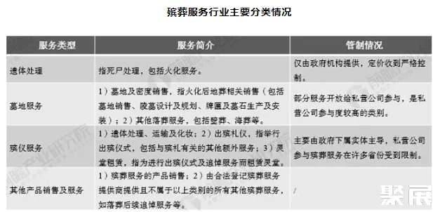 殡葬服务行业主要分类情况
