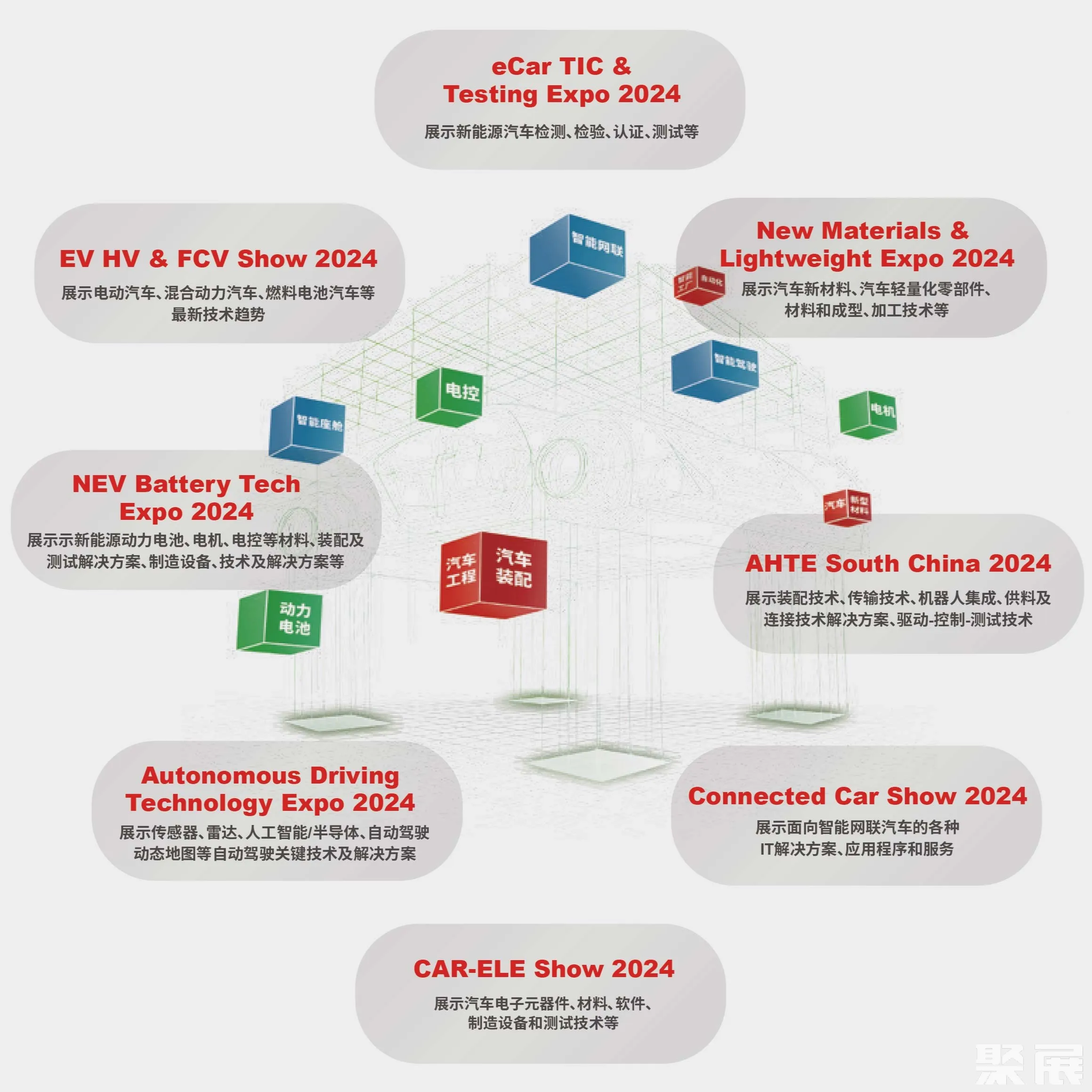 AMTS SOUTH CHINA 2024将前瞻技术展示提升到了空前高度,隆重推出AHTE South China 2024、New Materials & Light weight Expo、eCar TIC & Testing Zone、EV HV & FCV Show、Autonomous Driving Technology Expo、CAR-ELE Show、Connected Car Show、NEV Tech Show等多个主题展会,展示前瞻技术在汽车设计、研发的应用,促进数智技术在整车、汽车核心零部件装配及制造中的使用。