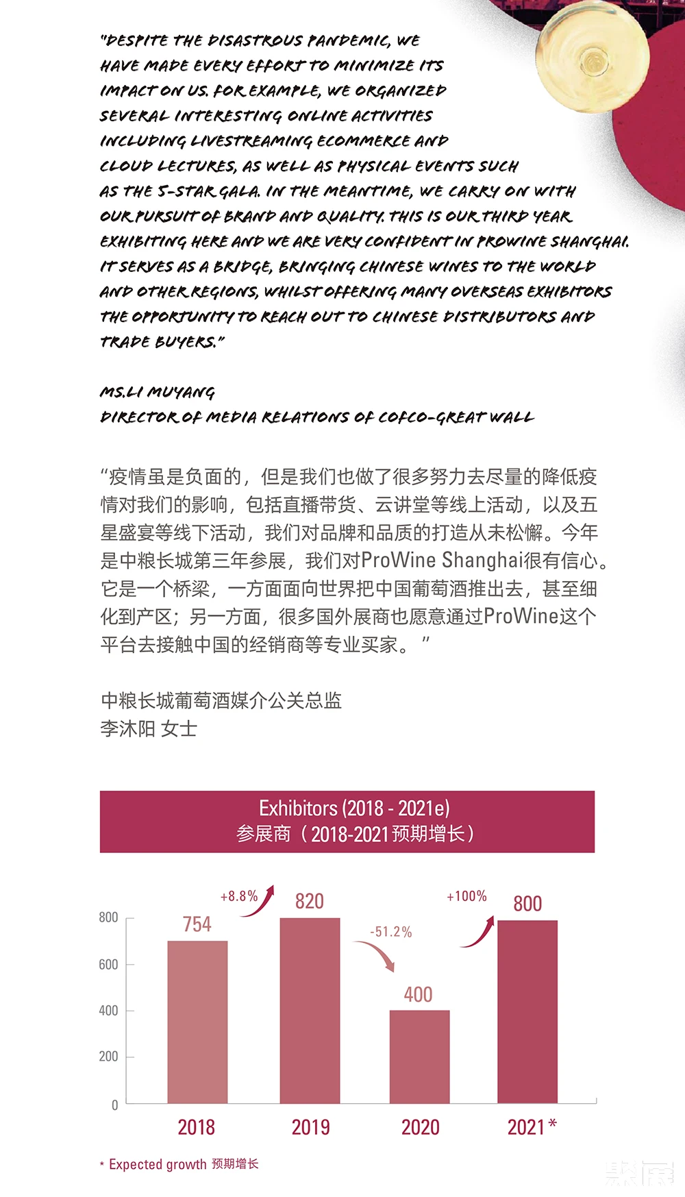 随着全球经济的逐渐复苏,海外企业也开始重新焕发出生机,展商数较上届增长超45%。上海国际葡萄酒、红酒及烈酒贸易展览会(ProWine Shanghai)来自全球的精品酒庄和优质葡萄酒生产企业纷纷亮相,与世界各地的生产商、进口商、经销商及重要买家互动交流。