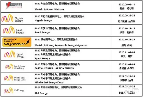 随着各国医疗投入及政策的支持,全球疫情状况一定可以逐渐向好发展。电力能源作为支柱产业一直备受各国重视,电力及相关能源需求的保障无论何时都是每个国家的重中之重。因此,作为重点的电力能源行业在疫情过后无疑将继续快速发展。此时做好中短期展贸计划势在必行。