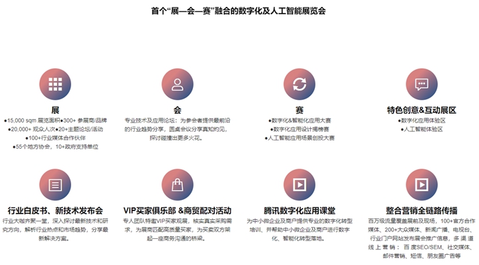 “数智展”致力成为数智经济时代引领未来创新发展、重构世界产业格局的博览会,努力搭建一个前沿技术展示、数智产业应用与交易、数字金融创投等高端平台,为数字生态、数字经济、数字社会、数字政府强力赋能!展会主题是“数字经济,领航未来”;品牌主张是“助力政府企业智慧升级、掀起数字经济创富浪潮”;口号是“数字经济,重构未来”。