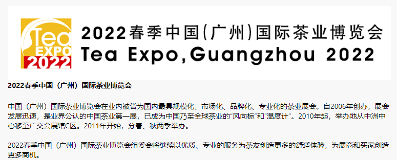 主办单位:中国茶叶流通协会、广东省茶业行业协会