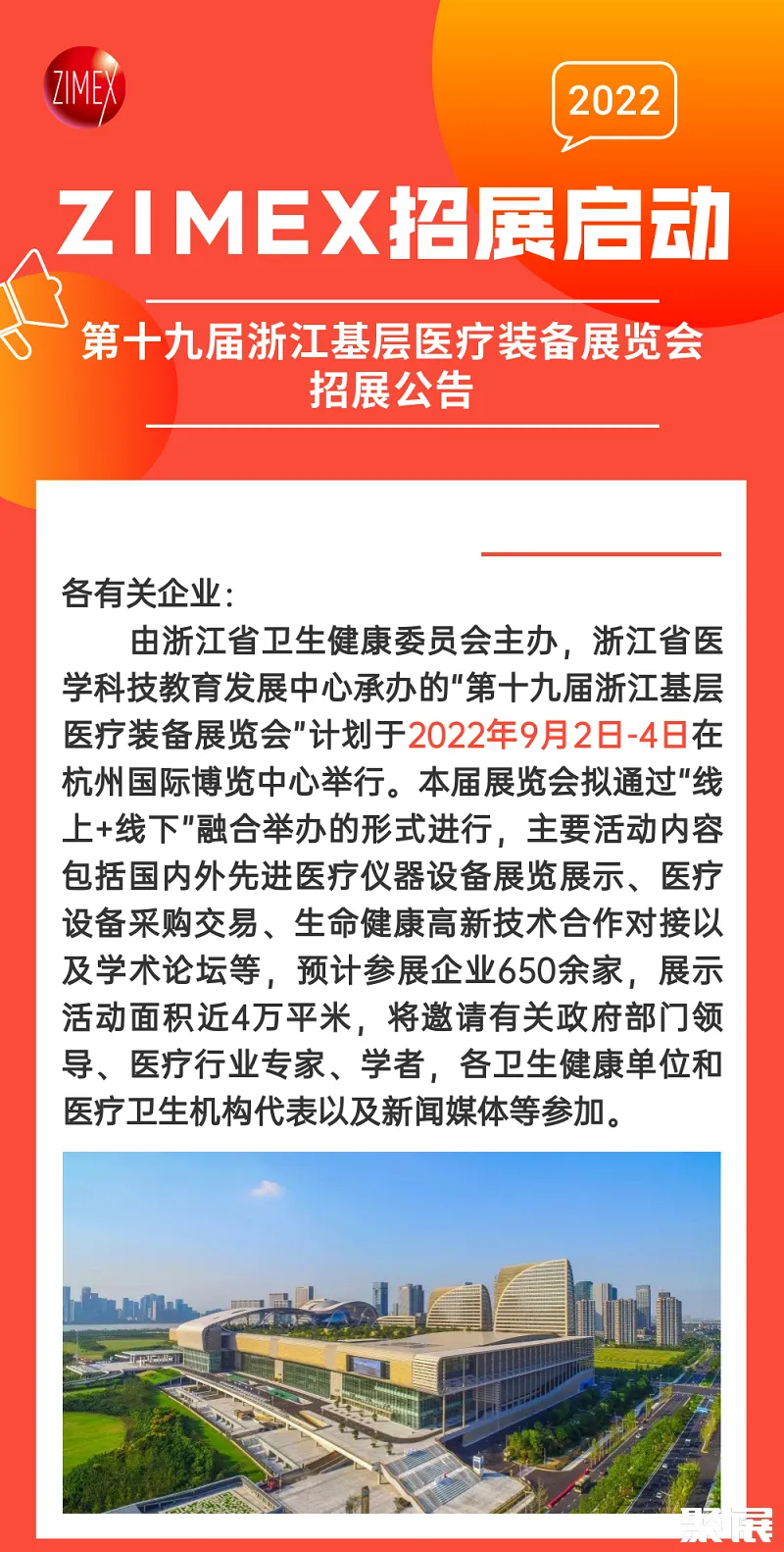 浙江杭州基层医疗装备展览会(ZIMEX)旨在引进国内外先进技术,展示最新医疗仪器设备,以加强国际技术、信息交流,扩大对外开发,繁荣我省医疗市场,促进我省医疗卫生事业加速发展。邀请了海内外近百家厂商参展,堪称为医疗科技和医疗仪器设备领域的一次国际盛会。