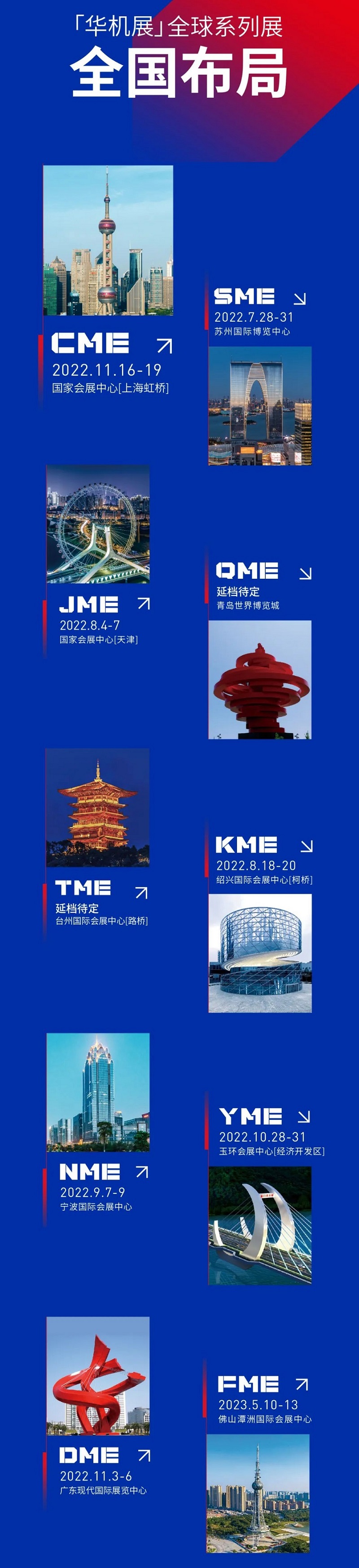 2022年CME上海机床展全新定档至11月16-19日在上海国家会展中心与各位相会。正是所有朋友对华机展的信任和包容,才让华机展发展至壮大,给所有制造行业机床产业提供更广阔的平台。