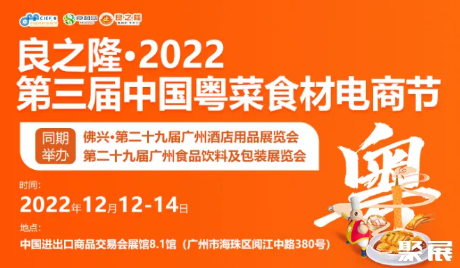 第三届中国粤菜食材电商节-良之隆广州食材展(CIEF)将2022年12月12日-14日在广交会展馆8.1馆举办。依然携手佛兴-广州酒店用品展览会联合办展,强强联合,深度融合食材餐饮和酒店行业,用新食材、新技艺、新理念挖掘粤菜魅力,促进粤菜在粤港澳地区的繁荣发展。