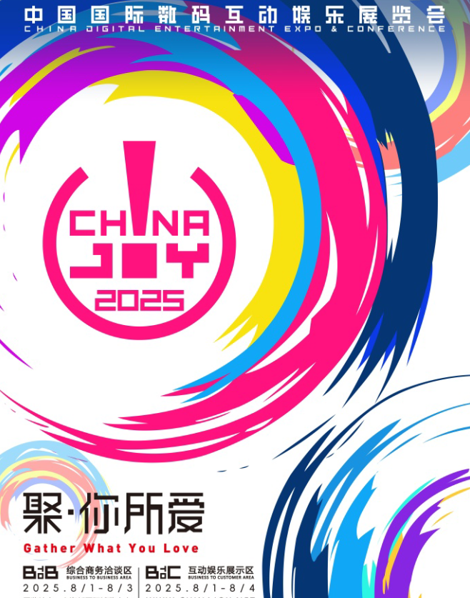 第二十二届中国国际数码互动娱乐展览会(ChinaJoy)将于2025年8月1日至4日在上海新国际博览中心举办。ChinaJoy同时发布展会主视觉及全新展会口号:聚·你所爱!(英译:Gather What You Love)。ChinaJoy将继续强化游戏为核心的定位,进一步提高展会的国际化程度,并通过一系列的创新内容和活动吸引更多核心用户参观展会。