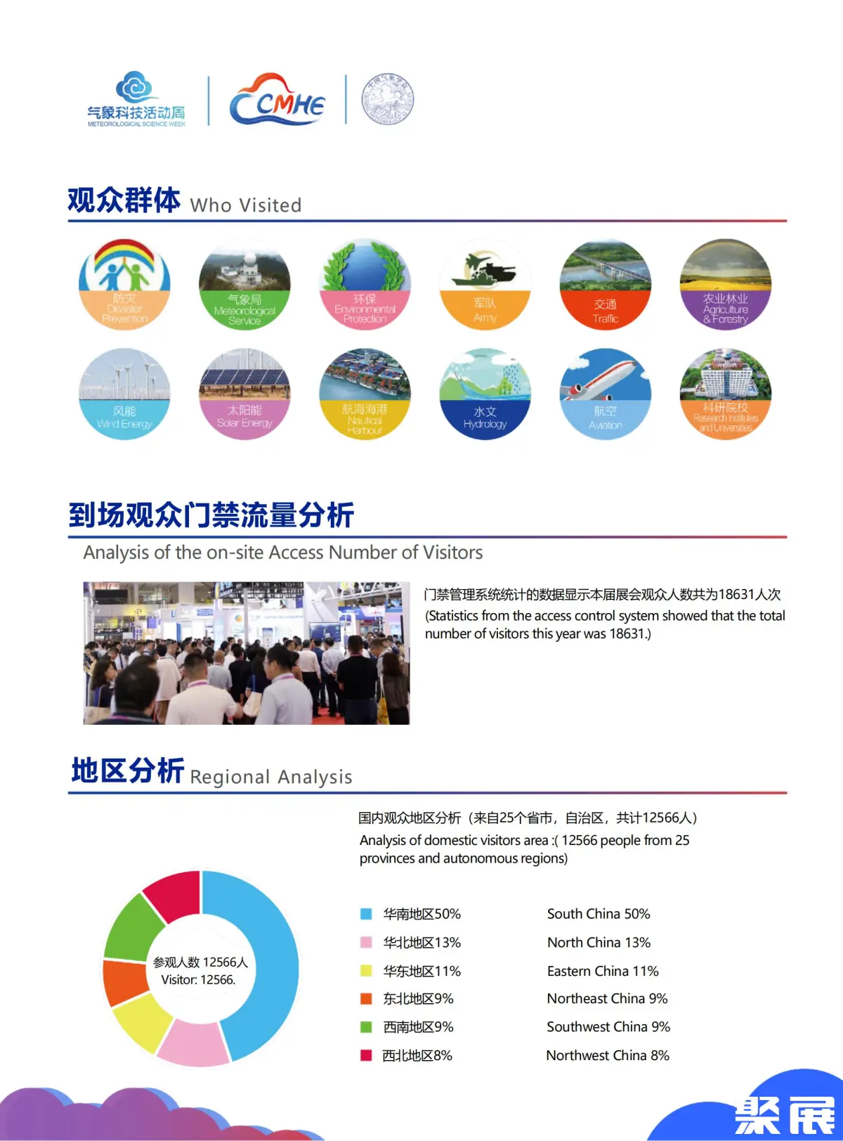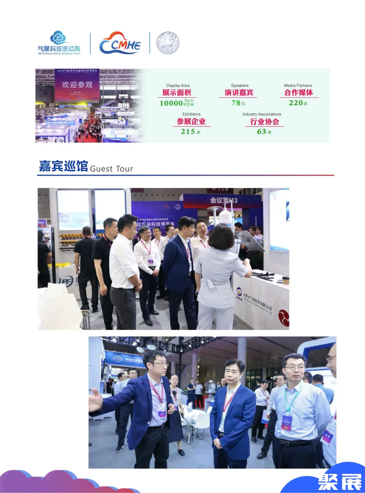 中国气象科技展览会(CMHE EXPO)上届展会总面积30000平方米,参展企业560家,参展人数达32000人。除中国展商外,日本、新加坡、韩国和中东地区的买家及经销商,也专程来华参观洽谈贸易合作。(本文内容版权归属聚展所有,未经同意,禁止转发)