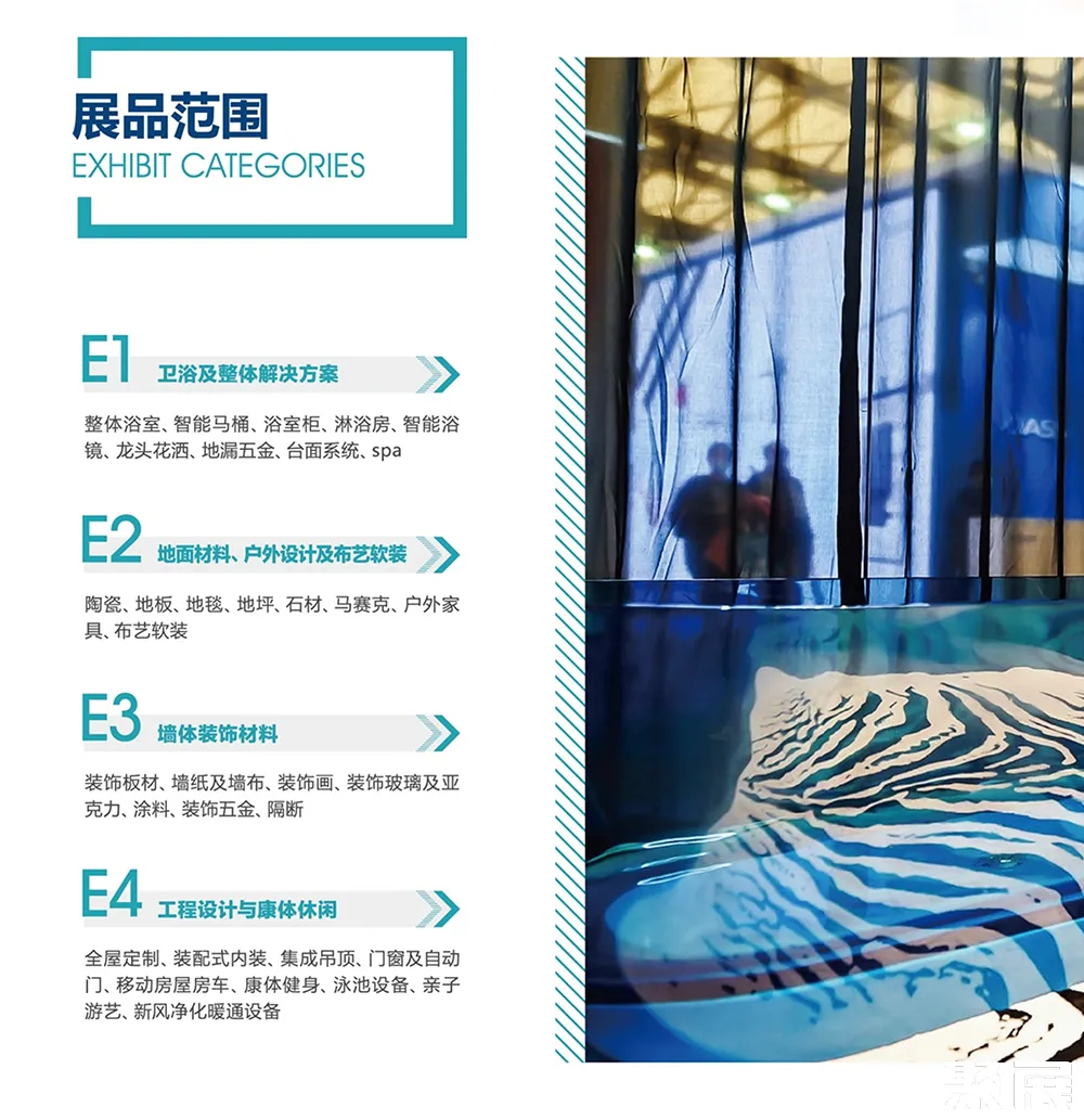 陶瓷、卫浴及整体解决方案:陶瓷、石材、马赛克、整体卫浴、智能厨卫、台面系统、浴室柜、浴室镜、淋浴房、浴缸、龙头花洒、地漏五金、电热毛巾架、干手器、水处理、spa、泳池设备、康养配套设备等