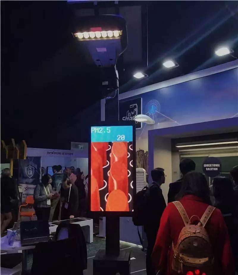 在展会上,拥有路灯照明功能、能显示温度等气象数据的智能电线杆非常引人注目,这是中国上海三思电子工程有限公司和以色列一家公司合作生产的智慧灯杆。