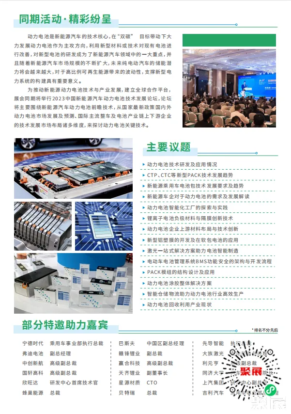历届合作品牌:比亚迪、广汽传祺、广汽埃安、昊铂汽车、弗迪动力、3M、泰科电子、东芝电子、青山工业、华域汽车、联创电子、西门子、赢创化学、艾德斯、艾利丹尼森、巴斯夫、大族激光、豪斯特、中邦激光、杜尔涂装、恩智测控、奋安铝业、佛山富士、格康电子、联塑储能、世运电路、依顿电子、集泰股份、海力达、天海电器、金杯电工、欧姆龙、法拉电子、圣戈班、胜拓胶带、中熔电气……这些行业头部企业的加入。不仅为展会增色添彩,促进技术交流与合作,更为新能源汽车产业的繁荣发展带来了无限的可能和机遇,开启产业发展的崭新篇章。