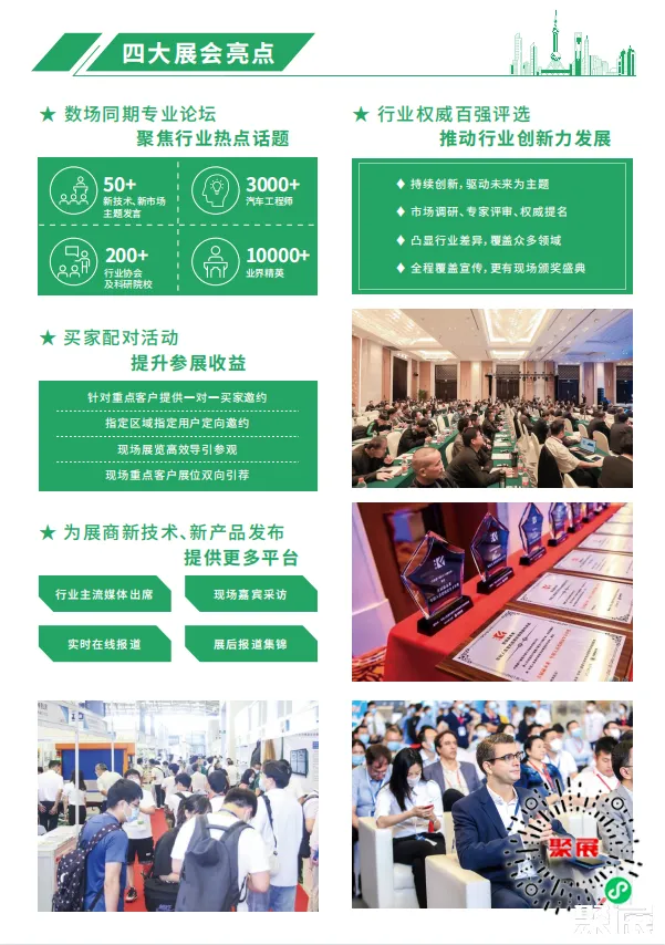 上海国际新能源汽车技术与生态链博览会2025在线预定展位 聚展为您呈现展位图、展位价格、参展商名录、会刊申请、邀请函申请、门票购买、签证服务、展位搭建等。想了解更详细资料,请联系聚展~ 本资讯由聚展网工作人员整理编辑,我们是一家汇集全球展会时间地点、门票购买、展位申请、展商名录及展会会刊的服务平台。参考资料: