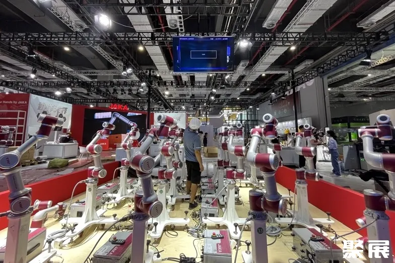 除了生产绿色产品,越来越多的企业也在用科技手段降碳。在节卡机器人展台上,16个舞动的机械手臂组成了一个方阵,一块大显示屏正立在前方。节卡机器人相关负责人王蕾表示,目前这些协作机器人可以应用到工业、生活等多个领域,通过收集协作机器人的数据,平台可以直观地向用户提供机器人的运行数据,计算出机器人群组的总体能耗数据,帮助用户进行更加精准的生产调度,从而减少碳排放。