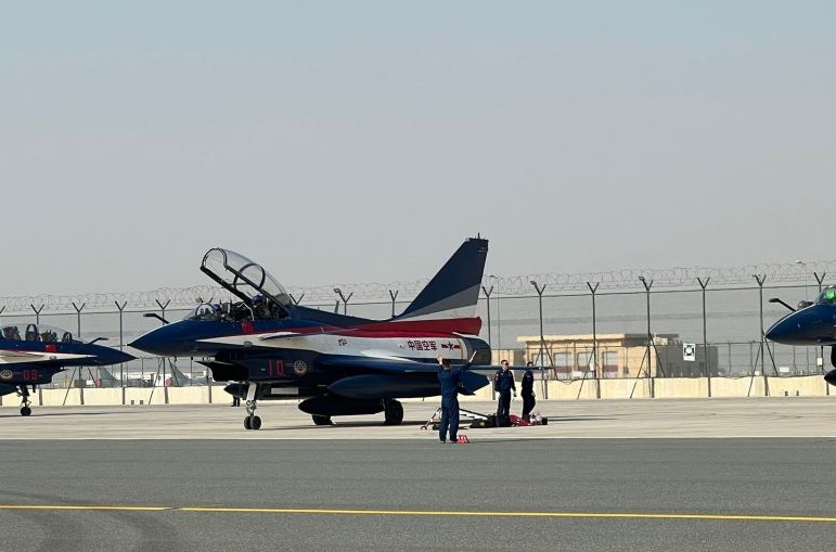 中国空军八一飞行表演队亮相迪拜航空展中国人民解放军空军八一飞行表演队已于11月8日抵达阿联酋迪拜阿勒马克图姆机场,参加即将举行的第十八届迪拜航空展。这是空军八一飞行表演队继2017年后第二次亮相阿联酋,也是中国空军首次参加迪拜航空展。