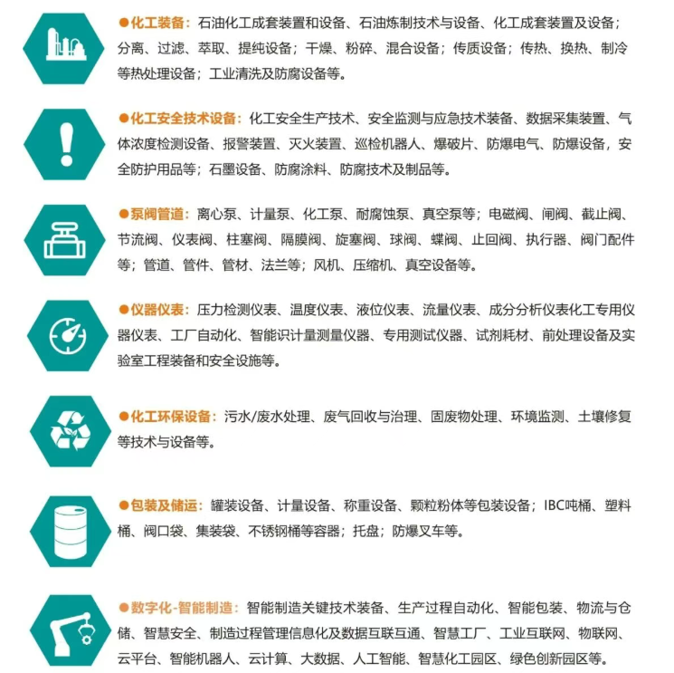 - 预计参展企业构成:300家参展企业,涵盖石油化工成套设备、环保技术、智能化工装备等领域