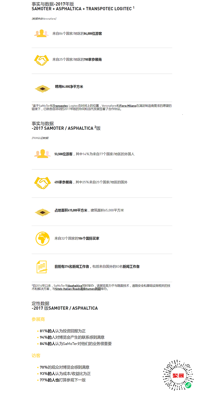 意大利高空作业展(SAMOTER)是欧洲土方及建设机械行业的知名展览会。由维罗纳展览集团主办,主办方始创于1989年,主要致力于农业与设备制造业,现已成为欧洲建筑机械三大展之一。