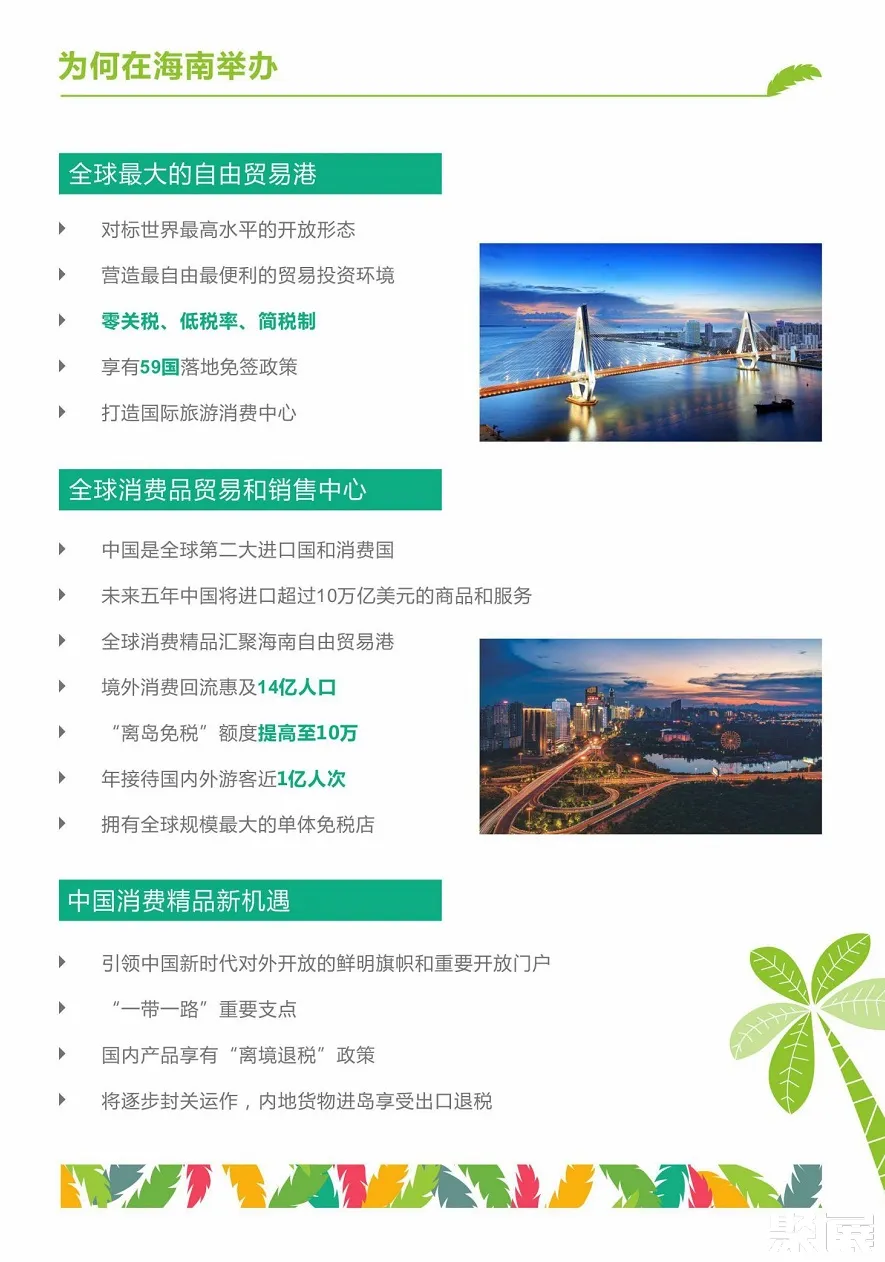 中国国际消费品博览会(EXPO HAINAN)为各国客商搭建专业化、市场化、国际化、信息化的贸易投资平台,为全球贸易商和投资者营造国际一流的营商环境。